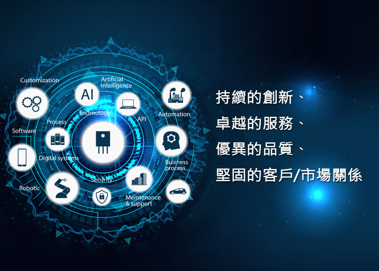 本公司努力開發(fā)第三代半導(dǎo)體相關(guān)應(yīng)用於電源管理的IC元件,致力於增加電子產(chǎn)品的轉(zhuǎn)換效率和節(jié)能省碳的功效,進(jìn)而提升成為世界級(jí)電源管理IC元件的品牌。
